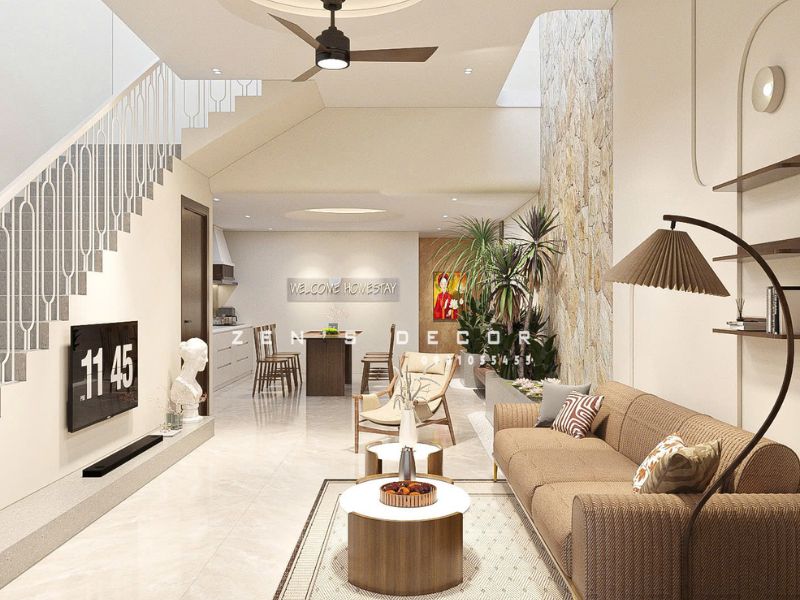 Bên trong homestay, thiết kế nội thất quyết định sự thoải mái và trải nghiệm lưu trú của khách. Phong cách hiện đại ưu tiên sự thoáng đãng, ánh sáng và tính tiện dụng.