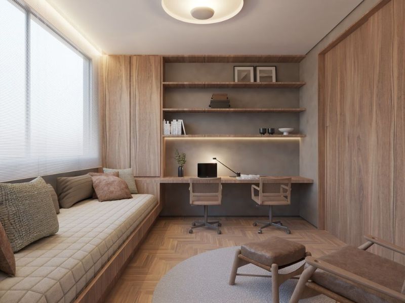Kết hợp phòng đọc sách với phòng làm việc lại tạo nên một góc riêng tư đa năng – nơi khơi nguồn cảm hứng sáng tạo và tập trung cao độ.
