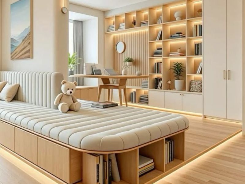 Đây là bước quan trọng nhất để đảm bảo hai chức năng không bị chồng chéo. Mặc dù là phòng kết hợp, bạn vẫn cần tạo ra sự phân chia tinh tế, dù là vật lý hay thị giác.